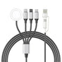 Erleben Sie die Freiheit des vielseitigen Ladens mit diesem 4-in-2 Kabel, das perfekt für alle Ihre Geräte geeignet ist, einschließlich iPhones, Androids und sogar der Apple Watch.